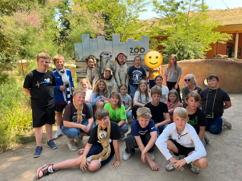 Der Besuch im Magdeburger Zoo war cool. Wir sind mit dem Bus hingefahren und haben uns schon sehr auf diesen Projekttag gefreut. Gut gelaunt sind wir dann dort eingetroffen. Nach einer ersten kleinen Erkundungstour begann unser Workshop. Hier haben wir eine Menge über gefährdete Tierarten erfahren. Haben Fragen gestellt und waren auch stolz, dass wir Antworten geben konnten. Im Anschluss setzten wir in Kleingruppen unsere Entdeckungstour fort. Wir freuten uns so viele verschiedene Tiere ganz nah zu sehen. Einziger Wehrmutstropfen, die Pandas waren nirgends zu entdecken. Am Ende des Ausfluges ging es in den Zoo-Shop. Jetzt erinnern zahlreiche Fotos und Plüschtiere an unseren Ausflug in den Magdeburger Zoo. Positiv zu erwähnen ist, dass dieser Tag unsere Klassengemeinschaft weiter gestärkt hat.